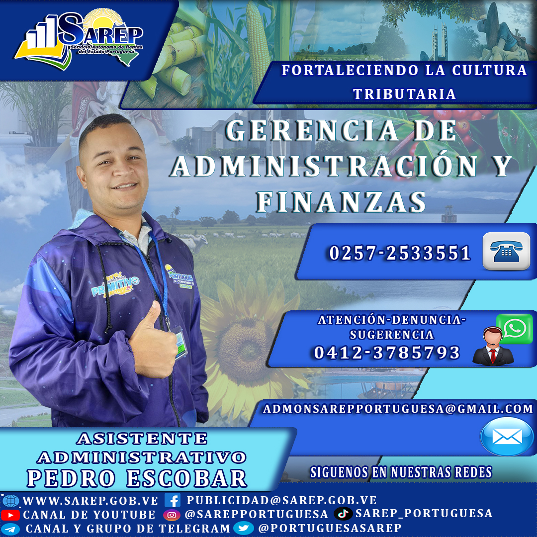 Servicio Autónomo de Rentas del Estado Portuguesa RIF: G-20006563-0 Carrera 5 entre calles 12 y 13. Edif. "Sarep", Barrio "Curazao". Guanare, Portuguesa. Correo-e: direccion@sarep.co.ve | Teléfono: (0257) 253-3551