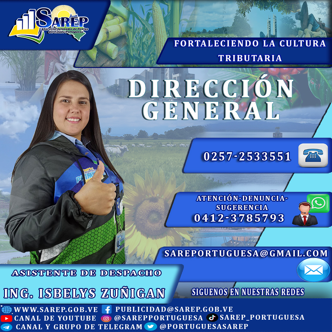 Servicio Autónomo de Rentas del Estado Portuguesa RIF: G-20006563-0 Carrera 5 entre calles 12 y 13. Edif. "Sarep", Barrio "Curazao". Guanare, Portuguesa. Correo-e: direccion@sarep.co.ve | Teléfono: (0257) 253-3551