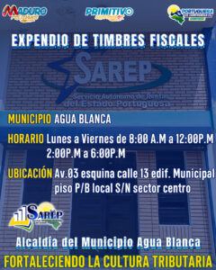 Dirección: Avenida 03 esquina calle 13 Edificio Municipal, Planta baja. Dirección de Hacienda Municipal de la Alcaldía del municipio Agua Blanca del estado Portuguesa.