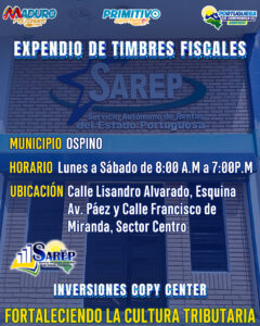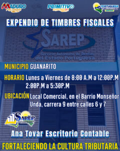 Dirección: Municipio Guanare. Carrera 5 entre calles 12 y 13, Edif. SAREP, planta baja.