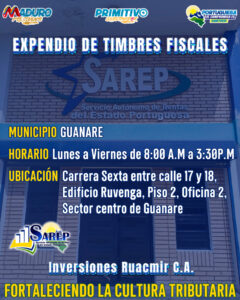 Dirección: Municipio Guanare. Carrera 5 entre calles 12 y 13, Edif. SAREP, planta baja.