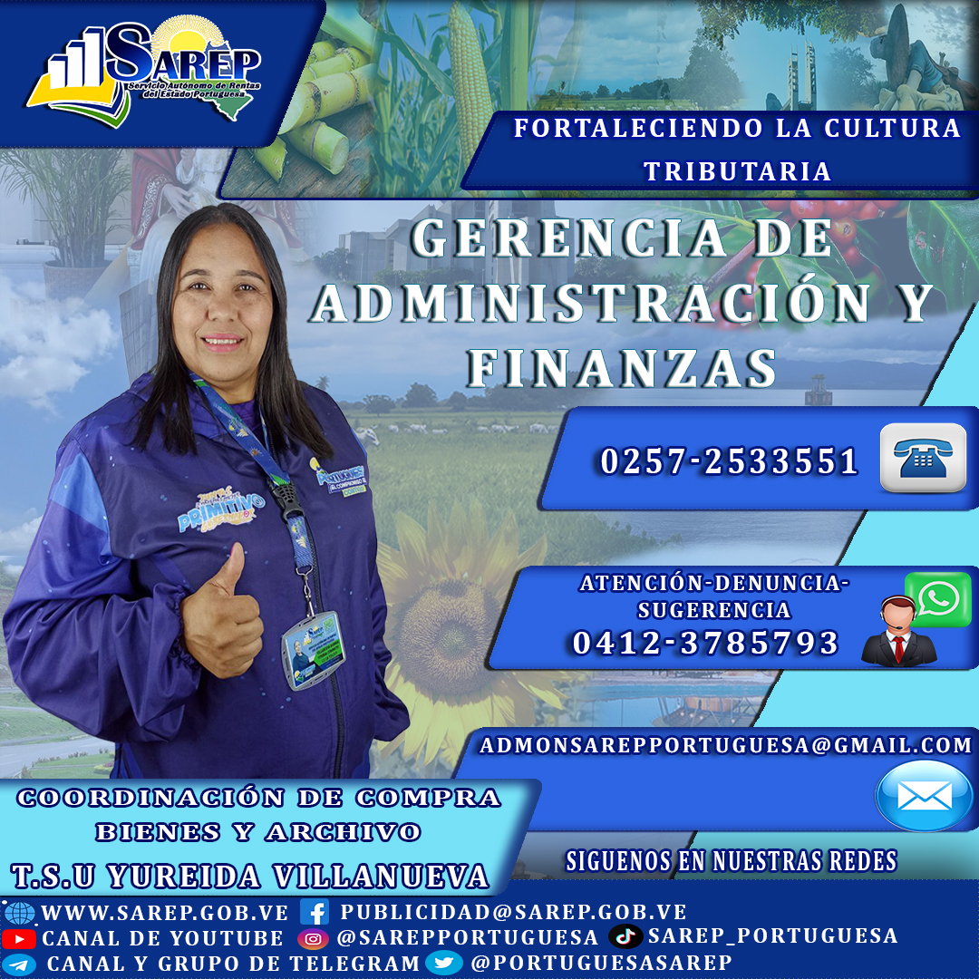 Servicio Autónomo de Rentas del Estado Portuguesa RIF: G-20006563-0 Carrera 5 entre calles 12 y 13. Edif. "Sarep", Barrio "Curazao". Guanare, Portuguesa. Correo-e: direccion@sarep.co.ve | Teléfono: (0257) 253-3551